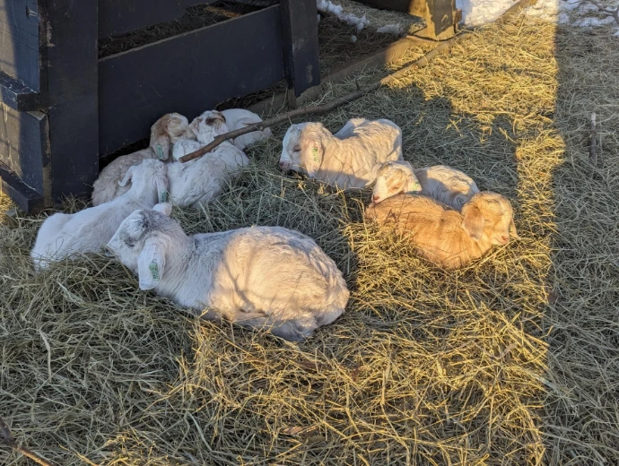 We were delighted that our goat matriarch gave birth to triplets this year! We raise a superhero-like breed of goats called Kikos. The breed is known for hardiness but also for being able to successfully carry and nurse triplets, but we had never seen it before in our herd. Luckily, our matriarch has an extremely calm and friendly disposition, so she’s been doing amazing things like standing stock-still for 10 full minutes while her smallest kid figured out which end of her to nurse from and generally negotiating the logistics of feeding three kids with two teats.