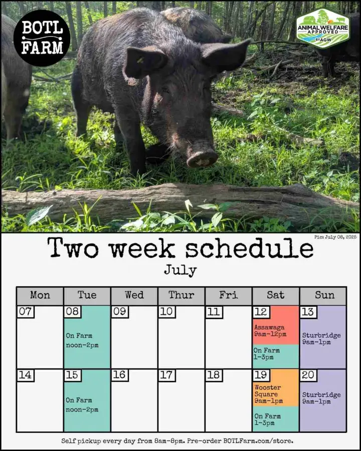 Meet Gertrud. One of our Mangalitsa Berkshire cross gilts (soon to be pig moms) hanging out in the coolness of our silvopasture.